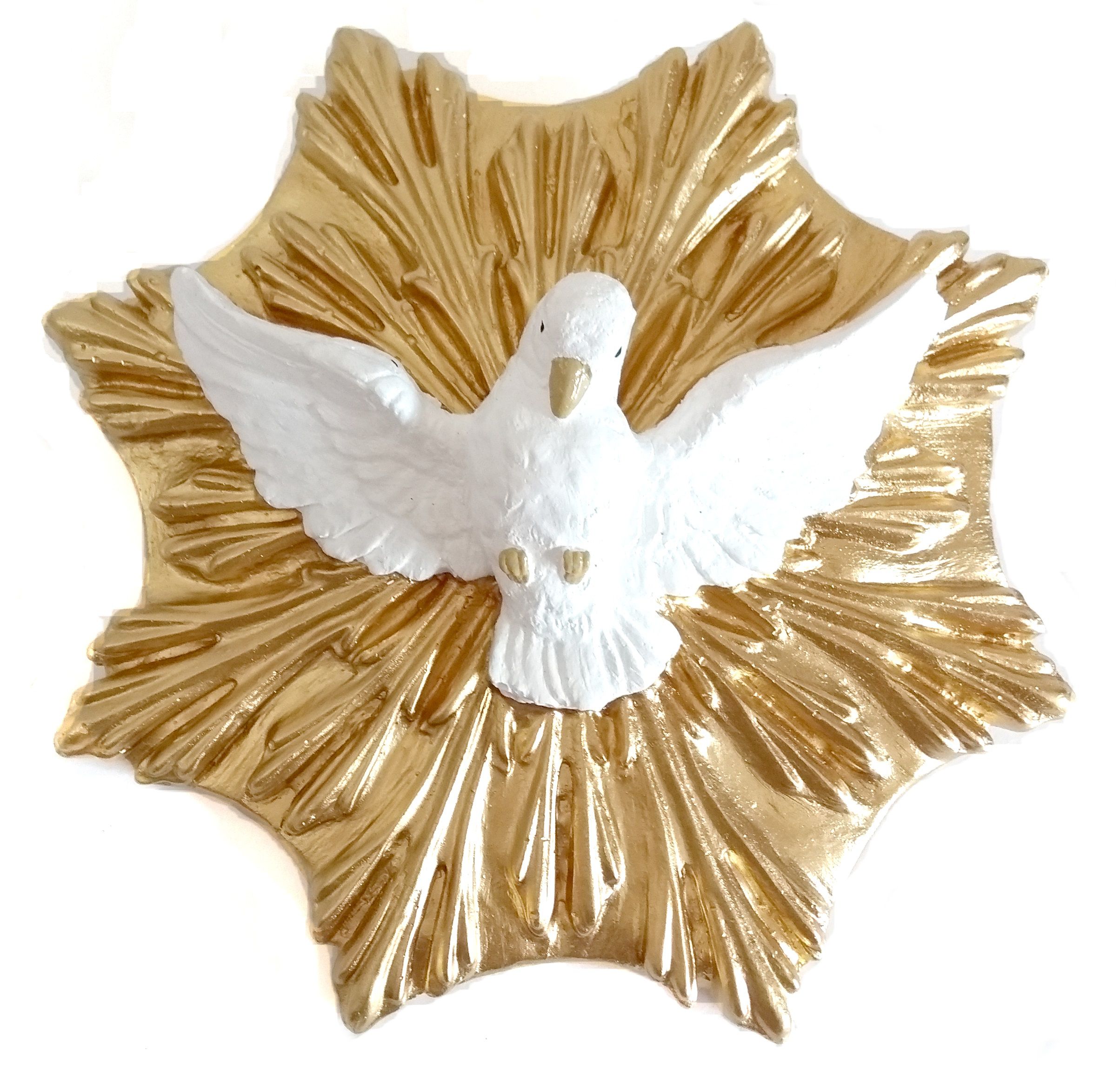 Imagem Escultura do Divino Espírito Santo em gesso maciço com pintura artesanal com gancho para ser pendurado.